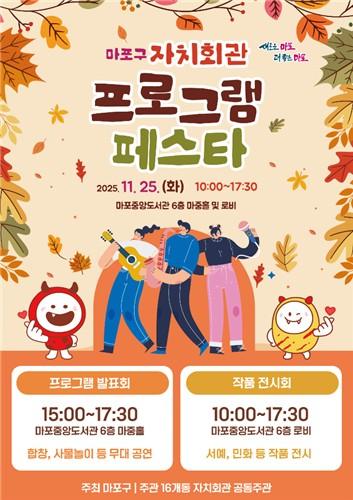 마포구(구청장 박강수)는 11월 25일, 마포중앙도서관에서 `자치회관 프로그램 페스타`를 개최한다.
