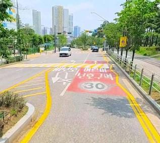 또한 언남초 일대는 기존 일반 횡단보도를 고원식 노란 횡단보도로 개선해 우회전 차량이 속도를 자연스럽게 낮추도록 유도했다.