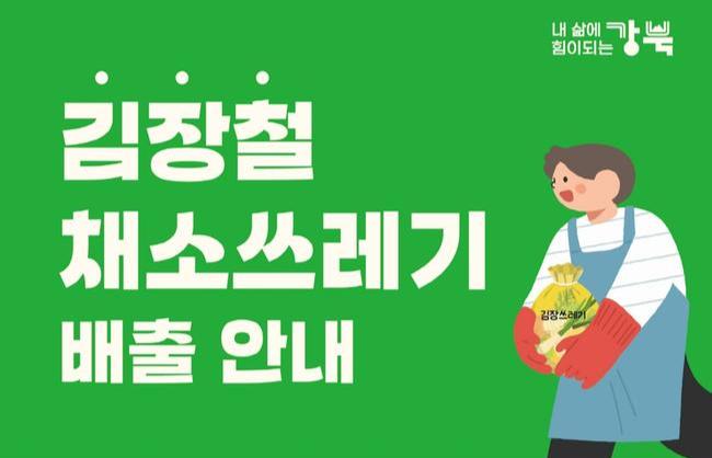 서울 강북구(구청장 이순희)는 김장철을 맞아 11월 2일부터 12월 31일까지 `김장철 채소쓰레기`의 일반 종량제봉투 배출을 한시적으로 허용한다.