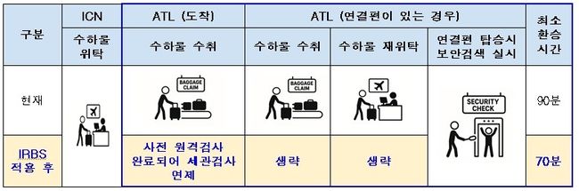 국토부는 대한항공 컨소시엄이 추진하는 이 사업을 위해 항공사와 공항공사가 수하물 정보를 정보주체 동의 없이 미국 보안당국에 제공할 수 있도록 「개인정보 보호법」 특례를 적용했다. 기존에는 사전 개인정보 제공 동의 승객에 한해 인천-애틀란타 노선에서만 재위탁 절차가 면제됐으나, 특례 후에는 애틀란타·시애틀·LA행 전 승객으로 확대돼 환승 시간이 크게 단축될 전망이다.