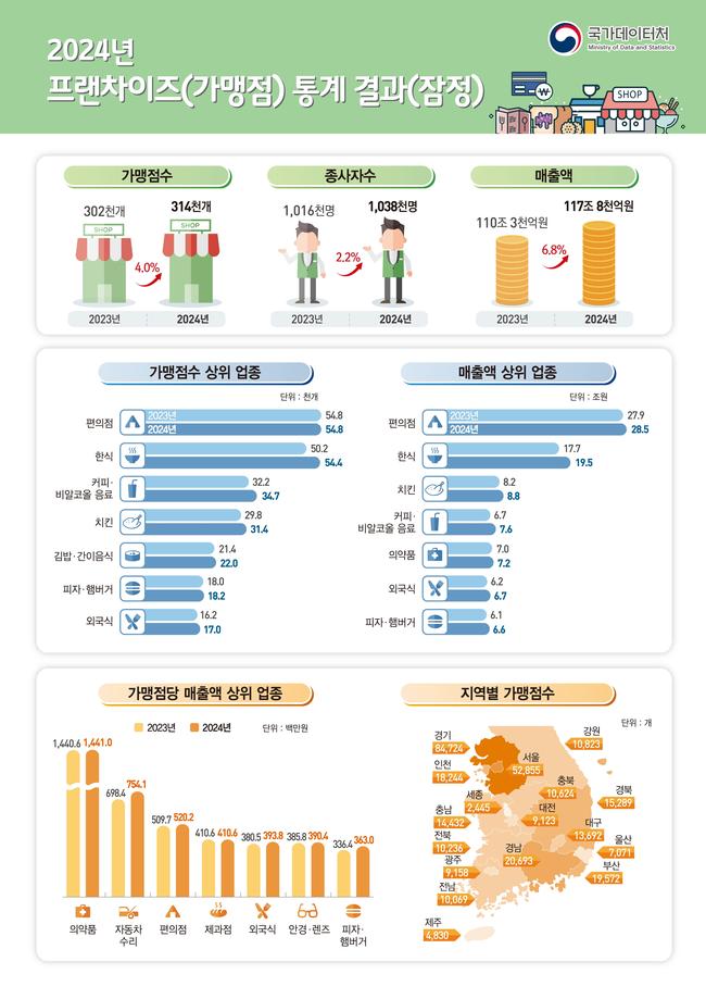 2024년 프랜차이즈(가맹점) 통계 결과(잠정)