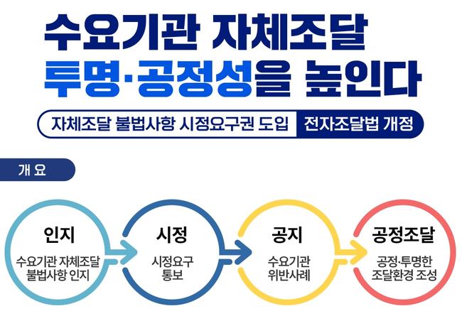 이번 법 개정으로 조달청장은 수요기관의 자체조달 입찰에서 명백한 법령 위반이나 공정성 훼손 우려가 있을 경우, 입찰 공고의 수정·변경, 계약 조건 조정 등 필요한 조치를 공식적으로 요청할 수 있다. 다만 이러한 시정요구는 사전 예방 차원에서, 명확한 위법성이 확인된 경우에 한해 제한적으로 이뤄진다.