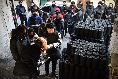 ▲ 한국교직원공제회가 12일 서울 성북구 하월곡동 일대에서 사랑의 연탄나눔 봉사활동을 펼쳤다