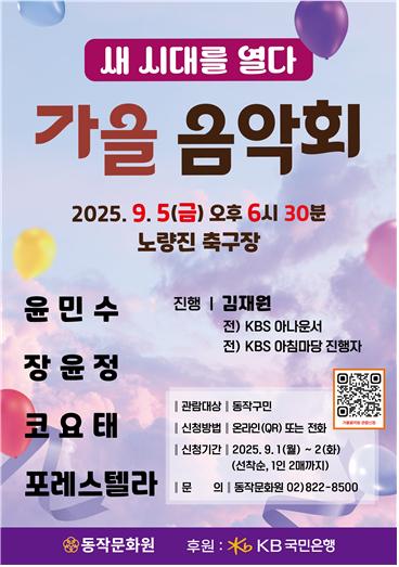 동작구, 9월 5일 ‘새 시대를 열다, 가을 음악회’ 개최