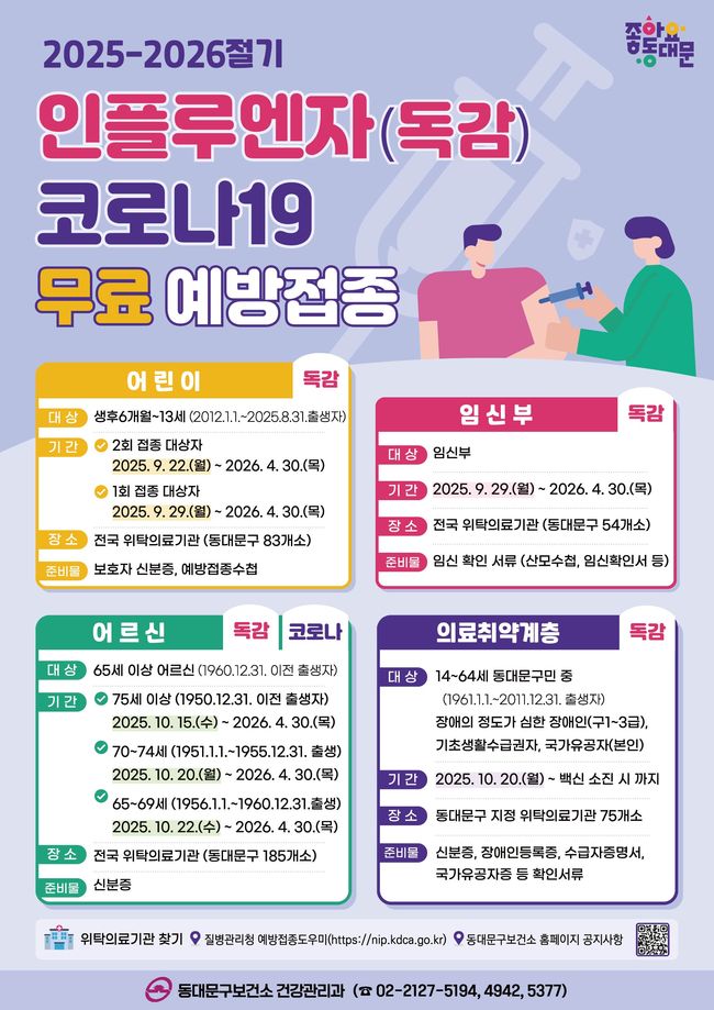 서울 동대문구가 오는 22일부터 2025-2026절기 인플루엔자 예방접종을 시작한다.